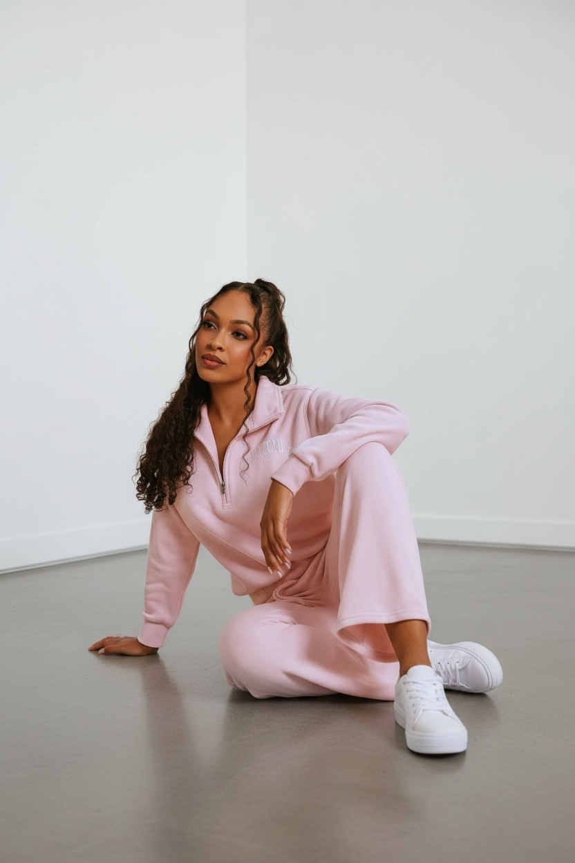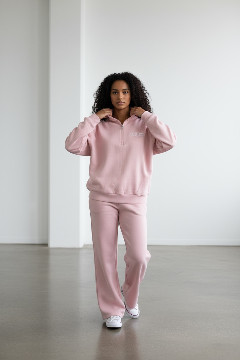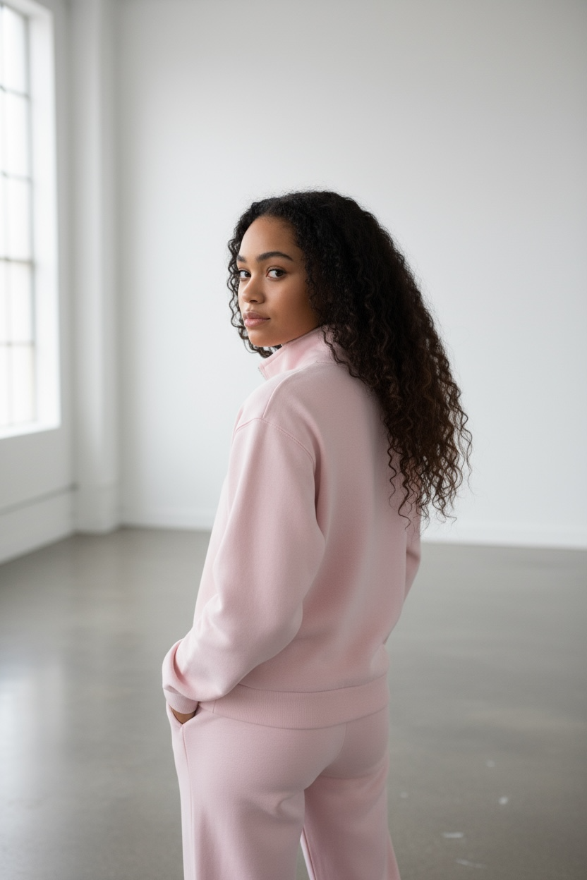 Esta sudadera rosada con zipper y cuello alto es ideal para quienes buscan un look moderno, cómodo y versátil. Perfecta para días frescos, salidas casuales o para complementar tu outfit deportivo.